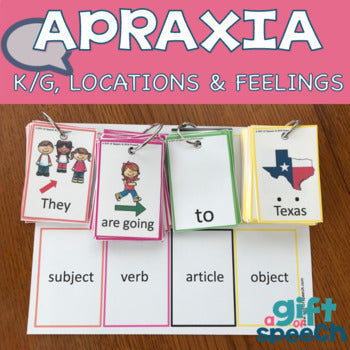 This apraxia was created to work on building utterances (MLU) for individuals with apraxia, articulation disorders, and expressive language disorders. Work on feelings, k and g, and multisyllabic words (using US States and vacation sites) This apraxia activity with k words, g words, and multisyllabic words combines a subject, verb, article/preposition, an object to create phrases and sentences. You can start with bunny, a bunny, see a bunny, I see a bunny, and then to The girls saw the bunny.