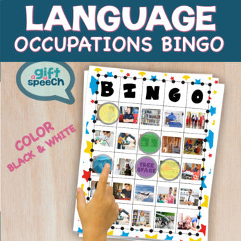 Language bingo occupations vocabulary practice for speech therapy and language development. This bingo game was developed to support communication development for students with moderate to severe communication deficits and life skills.