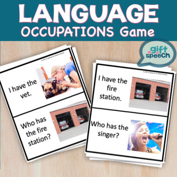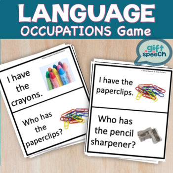 Have fun with occupations using language rich vocabulary games. This game was developed to support communication development for students with mild to moderate and moderate to severe communication deficits. I have used these with my general language groups, life skills and/or moderate to severe special education classrooms, functional academics, and more. The theme of this I have Who has? is occupations and community helpers. It is part of a larger Occupations and Community Unit, but can be used individually. This language game was designed to be used by SLPs and Special Education Teachers for group and individual work. The I have, Who has? game can be used to work on vocabulary, the function of items, features, categorization, answering questions, asking questions, and more. It is designed with 2 levels.