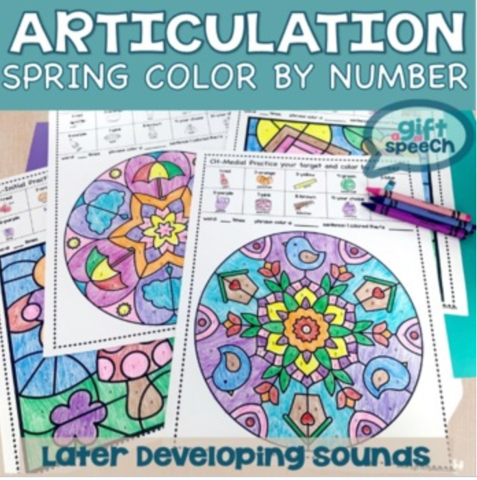 Spring into this NO PREP articulation color by number for later developing sounds. This no-prep Spring mandalas articulation activity was created to support your student's goals while keeping them engaged. This later developing sounds NO PREP color by code resource includes 4 practice pages per speech sound and position. Use this activity with your in-person groups or online. The PERFECT NO PREP articulation activity to add to your Spring Day-themed speech therapy toolbox.