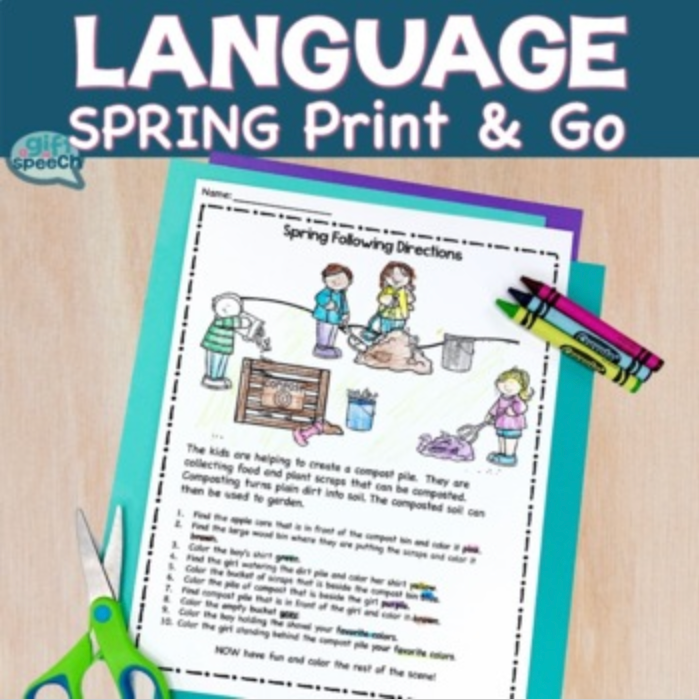 Spring into this NO PREP language activity. Ready-to-go printables and worksheets to work on vocabulary, language development, antonyms, answer wh questions, prepositions, categories, verbs, plurals, and more. This spring NO PREP speech and language activity is ready to print and go for tomorrow or right NOW.