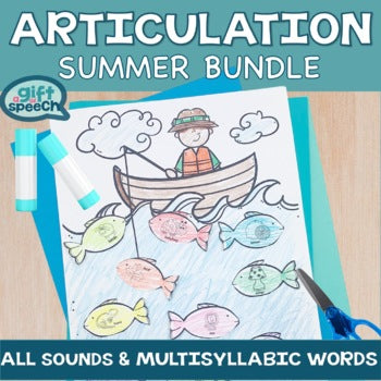 It is time for Summer fun with this no prep articulation activities bundle. This bundle includes later developing sounds, early developing sounds, multisyllabic words (3 syllables), and blends (s-blends, l-blends, and r-blends in production). These print and go summer articulation worksheets were created to address ALL sounds. This no prep printable resource includes 4 practice pages per speech sound and position (2 coloring pages and 2 craft pages per sound and position). There are also 40 multisyllabic words (3 syllables).